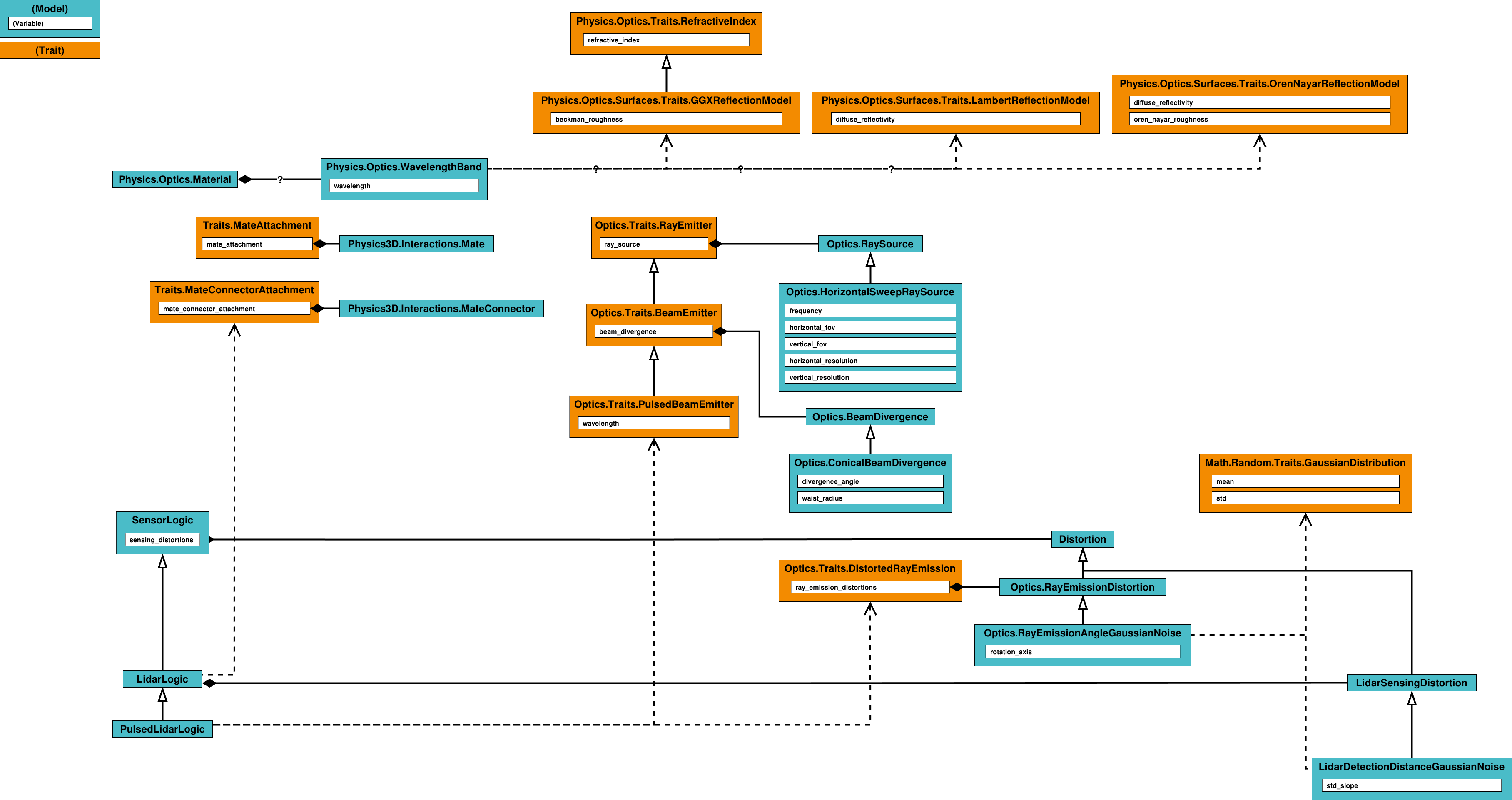 For the most common case of a pulsed lidar sensor, the Sensors.PulsedLidarLogic can be added to a Physics3D.System, which can then be provided with a suitable body to which the logic can be connected through a Physics3D.Interactions.MateConnector: